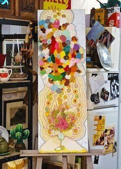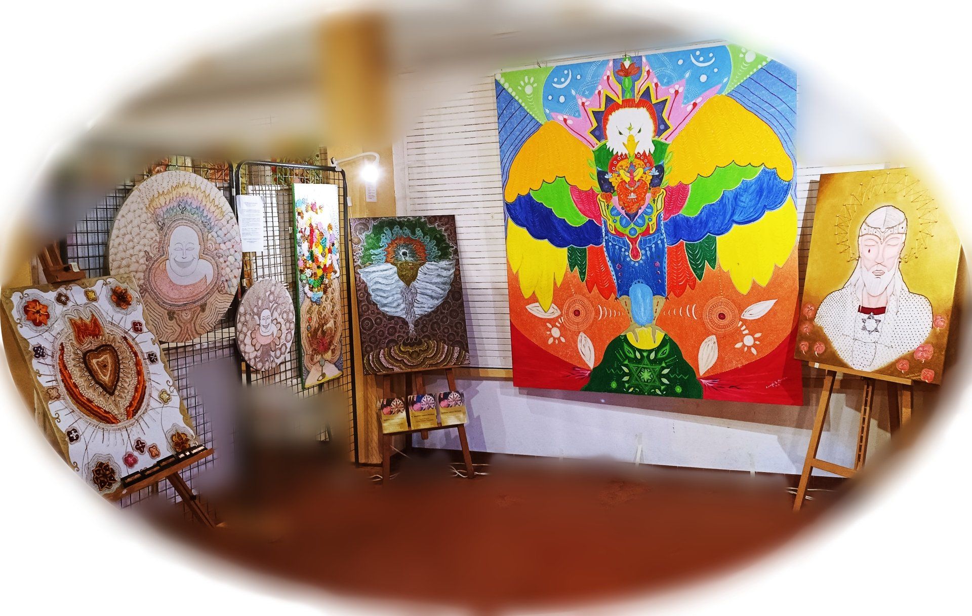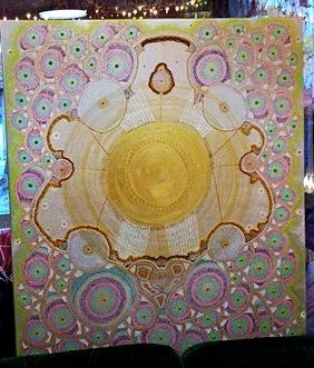 Mur de "Vortex de guérison" pour un cabinet d'un thérapeute "Les Messages du Corps" 75018 Paris. 33 tableaux et 14 clefs; chaque tableau ou clef a sa propre symbolique et son propre message.